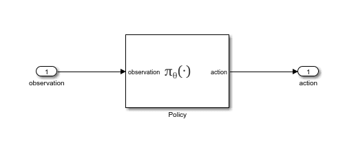 The agent is created in MATLAB and uses the environment, reward, observations, and action signals that are defined in the Simulink model. The training is performed in MATLAB using the train command. The RL Agent block contains the policy that is trained by the RL algorithm to control the system.