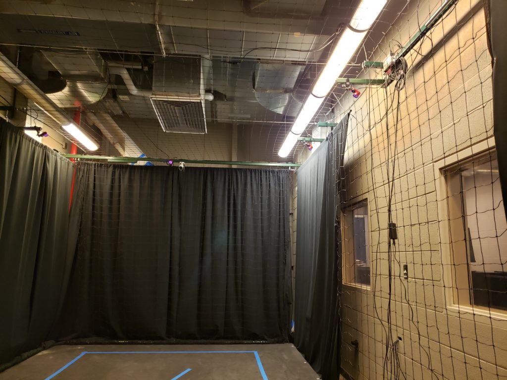 How can you mitigate this issue? Let’s start by making sure the cameras are mounted on a structure mechanically isolated from the netting and the curtains. It’s okay to use the same structure to support the net and the curtains since they don’t affect the regular operation of the lab. The cameras, however, are crucial to your everyday operation and any downtime is undesirable. If your room allows it, mount the cameras directly on the wall. We provide clamps that can support a beam up to 1.5” thick. Once the cameras are mounted to a structure separate from the curtains or netting support, you are ready to finish the setup of your Autonomous Vehicles Research Studio – and fly.