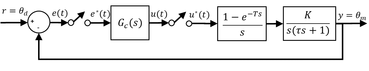 The sampling can be modelled using an ideal sampler and a zero-order hold (ZOH) function, shown in the following block diagram.