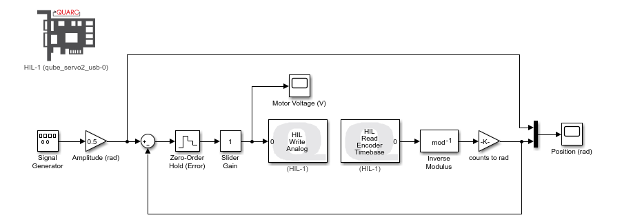 This is used to investigate the effects of applying a continuous controller in a digital environment when sampling at different rates. In the lab, the QUBE-Servo 2 position control loop is run at 500 Hz and at 33.3 Hz. The degradation in the performance of the position control at the lower sampling rate is substantial and demonstrates the effect that sampling has.
