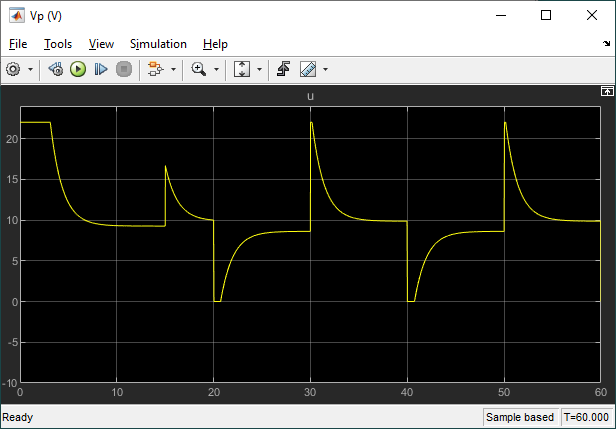 The QLabs Coupled Tanks Virtual Experiment uses a higher-fidelity nonlinear model that includes pump actuator delays, sensor noise, and so on. The Simulink model shown below is configured to interface to our QLabs Virtual Coupled Tanks Experiment. Here we show the system when it is almost complete with the 60 s cycle simulation.
