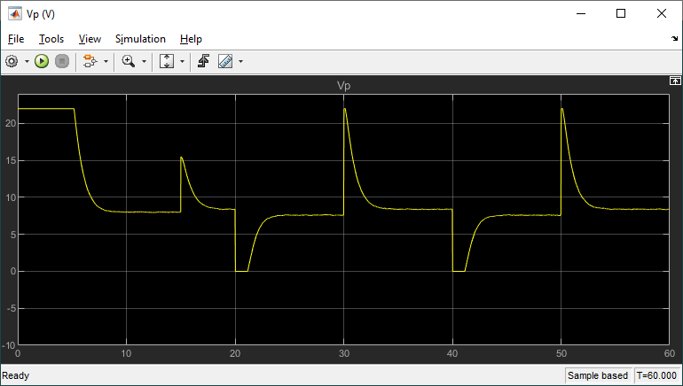 Running the Simulink model based on the nonlinear model of the Coupled Tanks using the tuned PID gains, we get the following response.