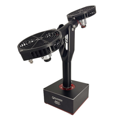The compact base includes a built-in amplifier with an integrated current sensor, a built-in data acquisition device, and an interchangeable QFLEX 2 interface panel offering connectivity options for a wide range of devices including PCs, embedded computers, and microcontrollers. Four high-resolution optical encoders, plus one Inertial Measurement Unit (IMU), can be used to measure and control attitude in both pitch and yaw axes. Slip ring wiring allows for unlimited, continuous, 360° yaw rotation.