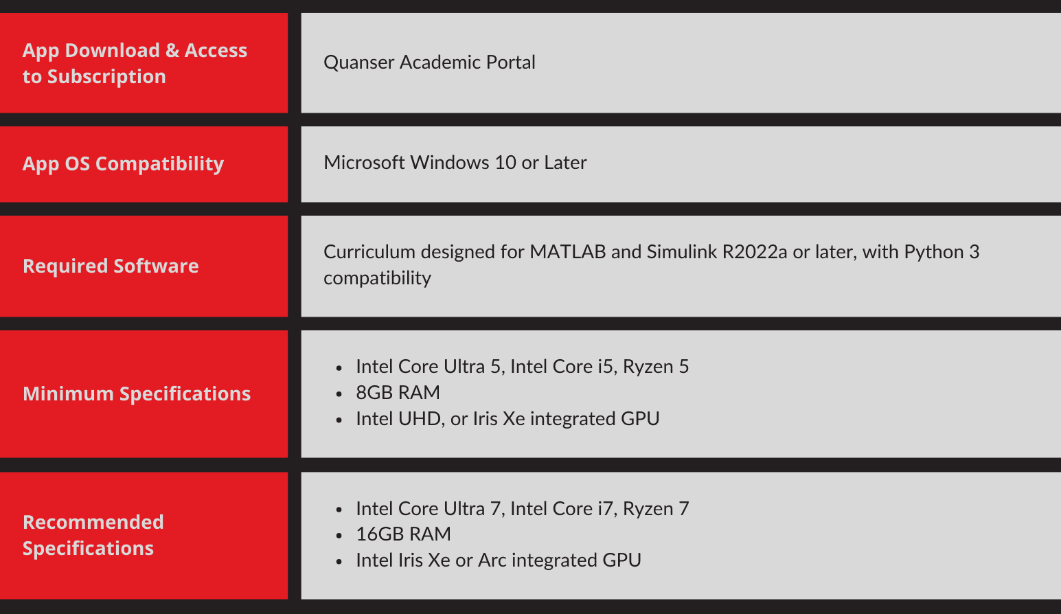 QLabs Virtual Aero 2 is a fully instrumented, dynamically accurate virtual twin of an Aero 2 system. It behaves in the same way as the physical hardware and can be measured and controlled using MATLAB® Simulink® and other development environments. QLabs Virtual Aero 2 can enrich your lectures and activities in traditional labs, or bring credible, authentic model-based lab experiences into your distance and blended aerospace and control systems course.